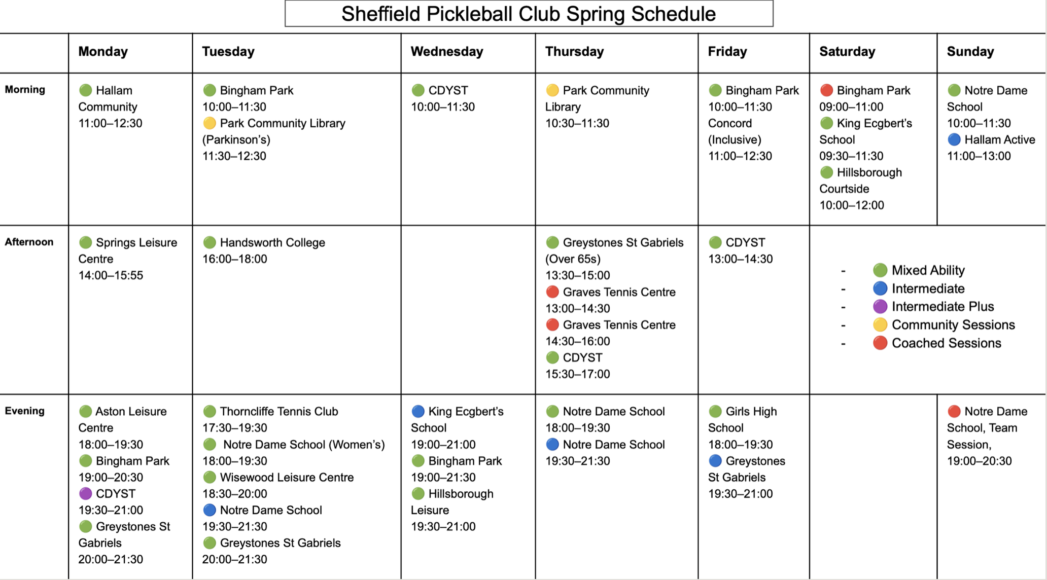 Here you can browse our growing network of Pickleball session times and venues across Sheffield.